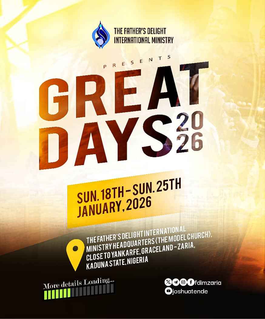Great Days is the annual life-changing convention of The Father’s Delight International Ministry — a prophetic gathering where believers experience deep spiritual renewal, divine direction, and encounters that shape destiny. For eight unforgettable days, thousands converge from across Nigeria and beyond to worship, learn, and be empowered for supernatural living.